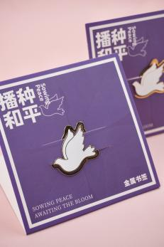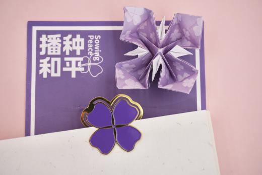 以紫金草、和平鸽为设计元素,金属烤漆工艺使得图案更鲜亮、更具质感。