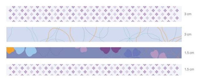 用艺术纸制成的纸胶带,分别用紫金草不同的颜色、组合方式以及胶带宽度设计了4款纸胶带,美观实用。