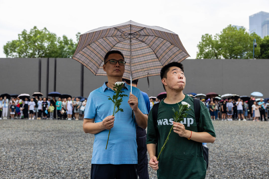 Mr Hu and his seven-year-old son were among the visitors attending the ceremony. They took a high-speed train from Anqing in east China’s Anhui Province to Nanjing on the morning of July 7 and headed to the Memorial Hall as soon as they got off the train. “Visiting the Memorial Hall on this special day is very meaningful. It’s a good opportunity for my child to get patriotic education. This helps him develop an awareness of remembering history and cherishing peace from a young age,” Mr Hu said.