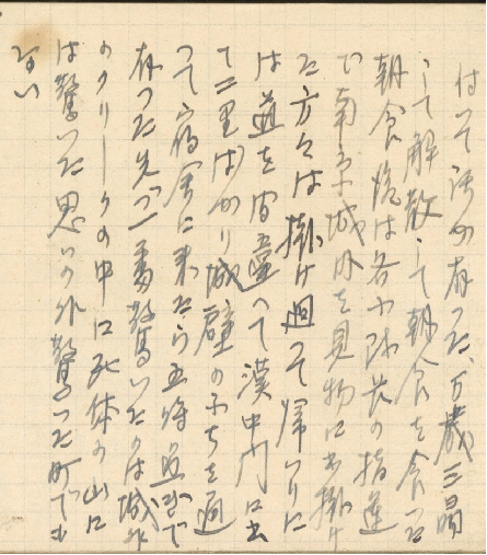 The diary also notes Eisaku Saijo arrived in Nanjing on December 31, 1937, where he witnessed the aftermath of the massacre. He wrote in his diary on January 1, 1938, “After breakfast, under the command of the squad leaders, we went into Nanjing for a tour of the city. After wandering around, on the way back we took the wrong turn and arrived at Hanzhong Gate. We kept walking along the city wall for about eight kilometers, and then went back to our quarters, when it was already after five PM. What shocked me most was the mountain of corpses by the river outside the city....”