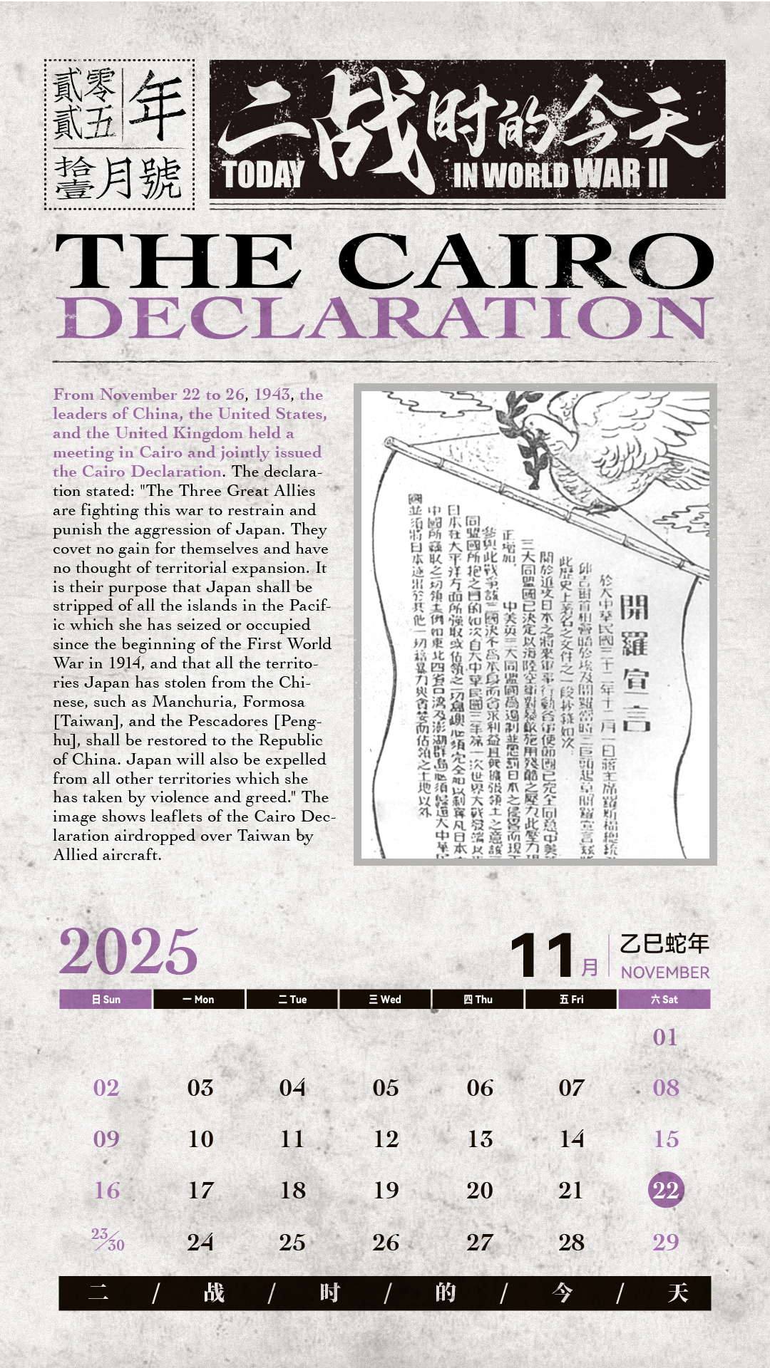 Today in world WAR Ⅱ | THE CAIRO DECLARATION