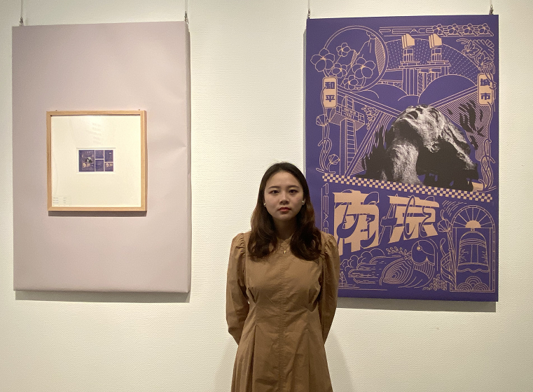陈欣宇与获奖作品《南京·和平》合影