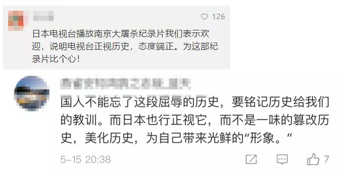 近两年来,日本国内试图否定或者美化包括南京大屠杀在内的历史罪行的声音似乎越来越刺耳。这部正视历史的纪录片,赢得了网友的尊重。
