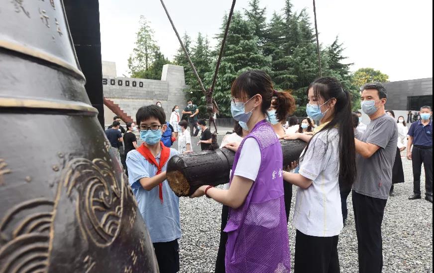 在每个开馆日,有观众冒着酷暑,提前来到纪念馆1号门外,等待进馆体验庄重的撞钟仪式;也有外地观众连夜驱车赶来,体验这一具有特殊意义的时刻。观众纷纷留言:“充满仪式感的撞钟仪式,让心灵得到了一次洗涤。”