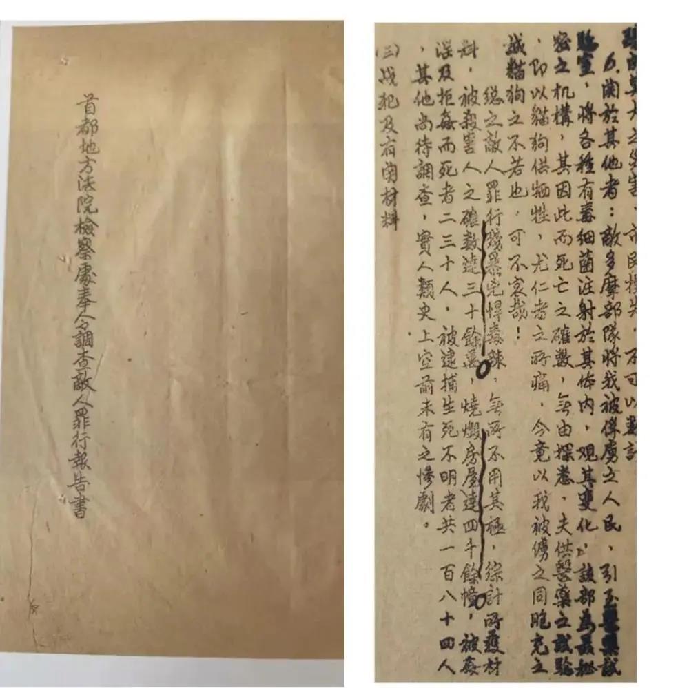 《首都地方法院检察处奉令调查敌人罪行报告书》(南京市档案馆提供)