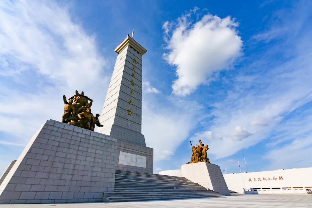 蓝天白云下,抗美援朝纪念塔巍峨屹立,遥望着鸭绿江两岸。这沉默而巍然的形象,不正是志愿军战士的写照么?