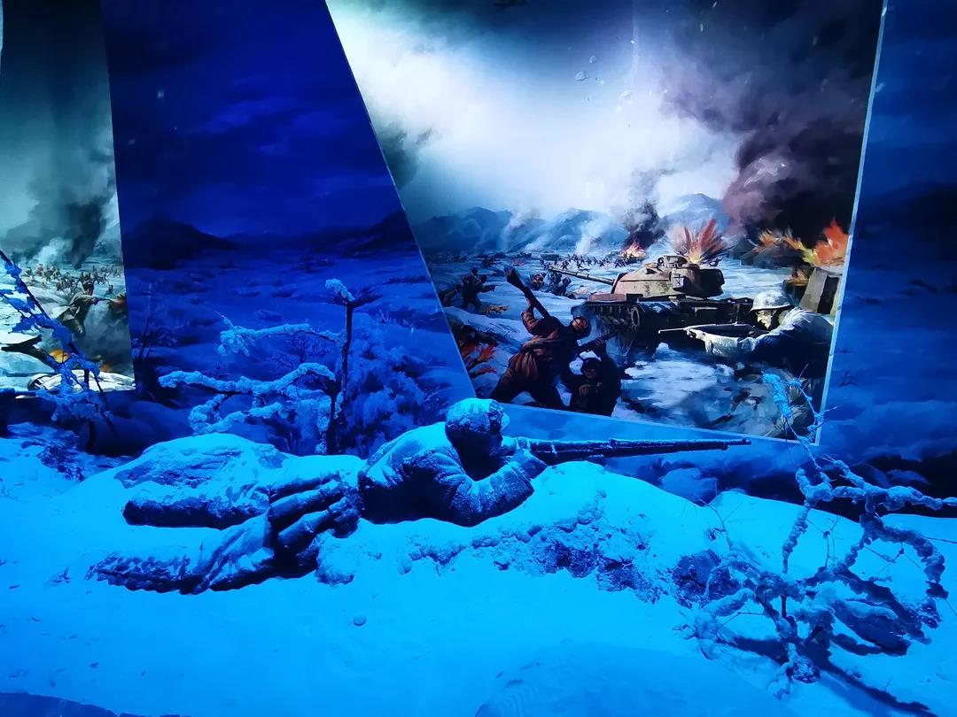抗美援朝战争厅通过展板、文物、影像、雕塑、绘画、情景复原等,为人们全面、真实地复原了抗美援朝战争的历史,让观众们深深震撼、敬佩。