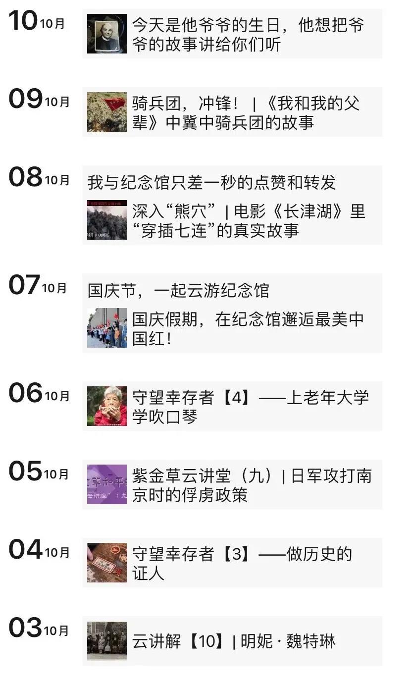 “不应该因为历史的黑暗就不让孩子去了解,相反我认为只有让孩子了解过去的苦难,他们才能体会今天的幸福生活,感受到个人和祖国是密不可分的。”国庆期间,刘文娜和孩子积极关注我馆新媒体平台的“云游纪念馆”“云讲解”等栏目,虚拟参馆。她还收集了很多有关抗战的历史绘本,比如《南京那一年》《心形雨花石》《家书》等,与孩子一起阅读。
