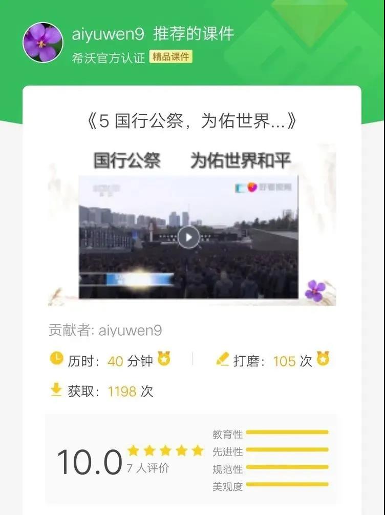 “在‘九一八事变’90周年纪念日的当天,我们班刚好要上到第5课《国行公祭,为佑世界和平》,在这么一个特殊的日子里,我觉得更应该让学生们有所感悟,有所启发。”于是,刘文娜决定自己制作课件,她不断地翻阅历史书籍,丰富内容,经过105次打磨修改直到上课前一天的凌晨3点才完成。