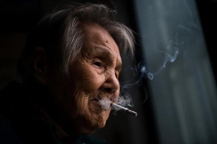 随着年龄增大,马秀英有时会抽上一支烟(新华社 2016年11月18日摄)