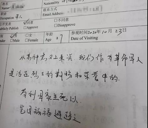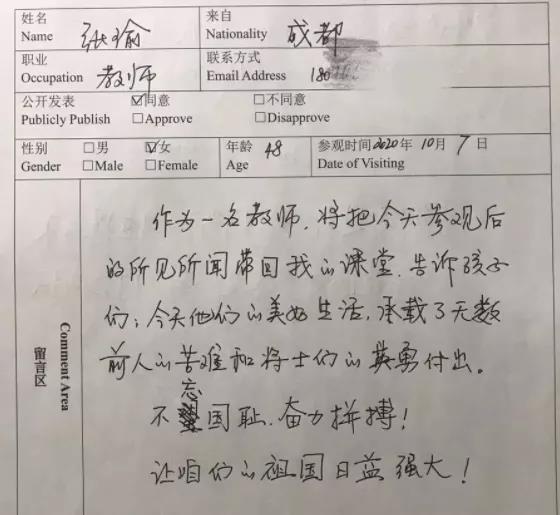 有老师参观后留言:要把在纪念馆的所见所闻讲给学生们听。