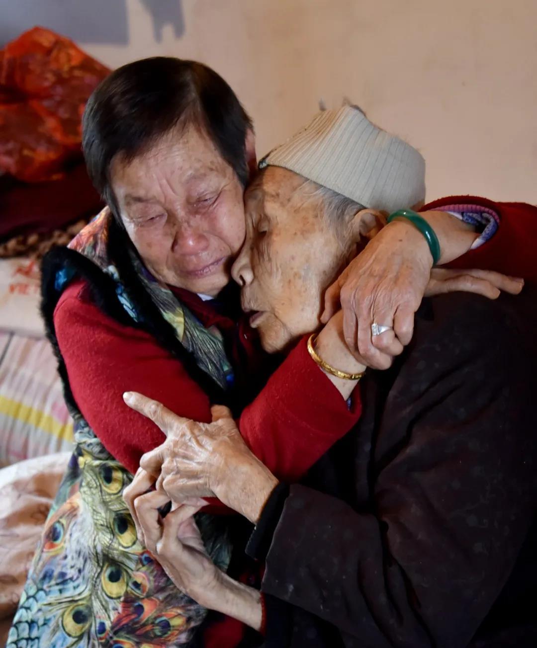 “妈妈,妈妈啊,我终于找到你啦!”2021年11月20日上午,在湖南岳阳华容县的一幢独立小三楼上,85岁的张二英走进卧室,上前抱住坐在床边的97岁的雷金二(雷金安)老人抱头痛哭。