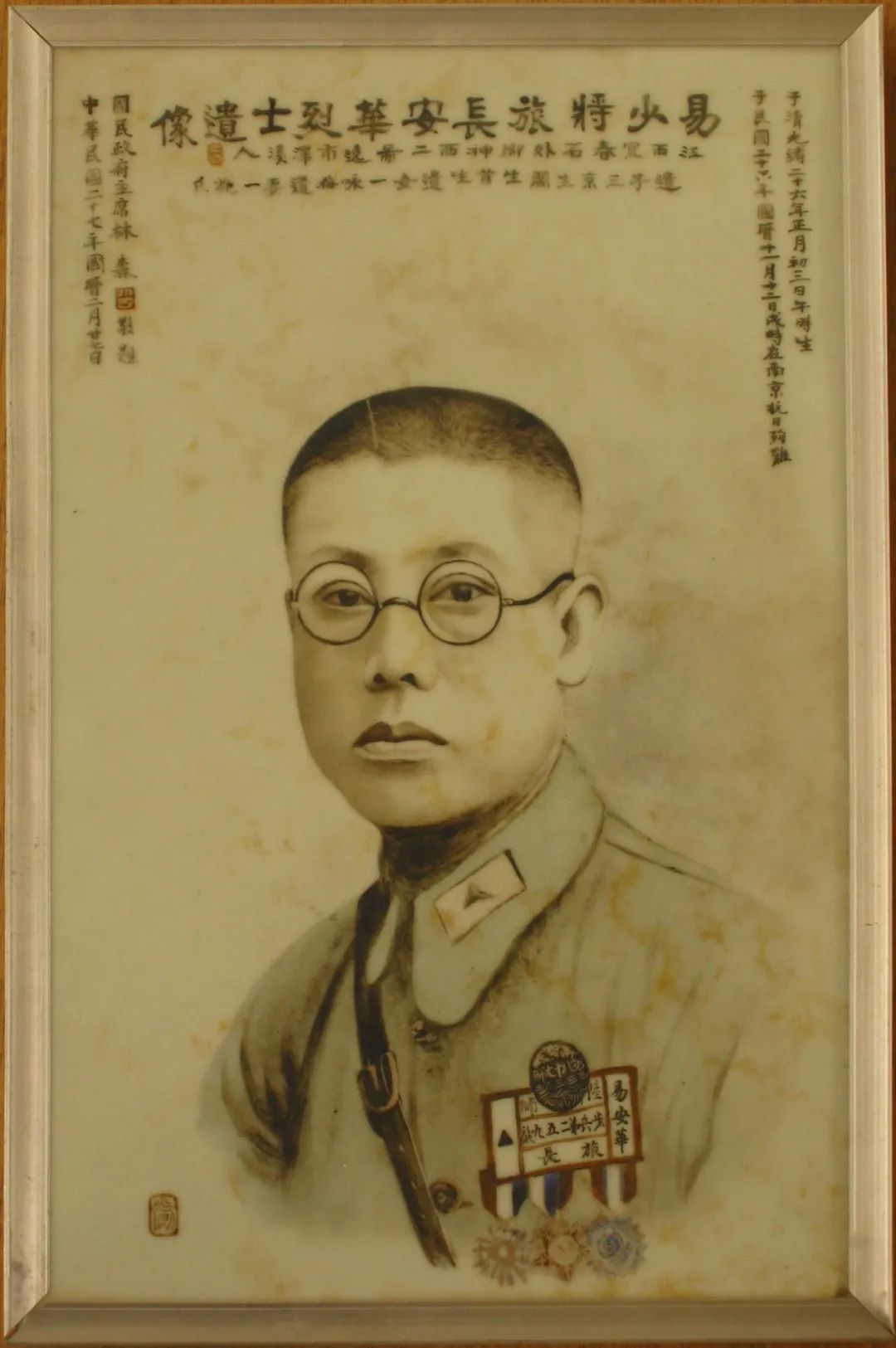 2005年,易安华将军的小儿子易豪雄先生将父亲瓷板遗像捐赠我馆。捐赠仪式上,易豪雄说:“家父勤勉刻苦,思想敏锐,秉性刚毅,时刻关心国家大事。他爱护妻儿,对母亲和我们姐弟疼爱有加,但在那个战火纷飞,祖国领土备受践踏的年代,国家大义使他无法顾及小家。”