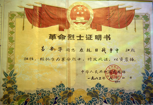 同年,这幅瓷板遗像被评为(抗战类)国家一级文物。1983年,中华人民共和国民政部追认易安华为革命烈士。2014年9月1日,民政部公布的第一批著名抗日英烈名录,易安华名字赫然在列。