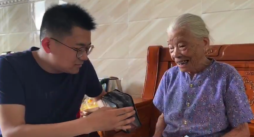 今年5月,是我们最后一次探望,老人已经抱上了重孙子,逗弄小重孙时她笑得特别开心。老人的儿子说,春节时她生了一场病,卧床了几个月,直到最近才逐渐恢复。在和我们交流时,老人的身体看起来还是很硬朗。我们帮她撕开了小蛋糕的包装,她吃得津津有味,不停地说“好吃””好吃”。