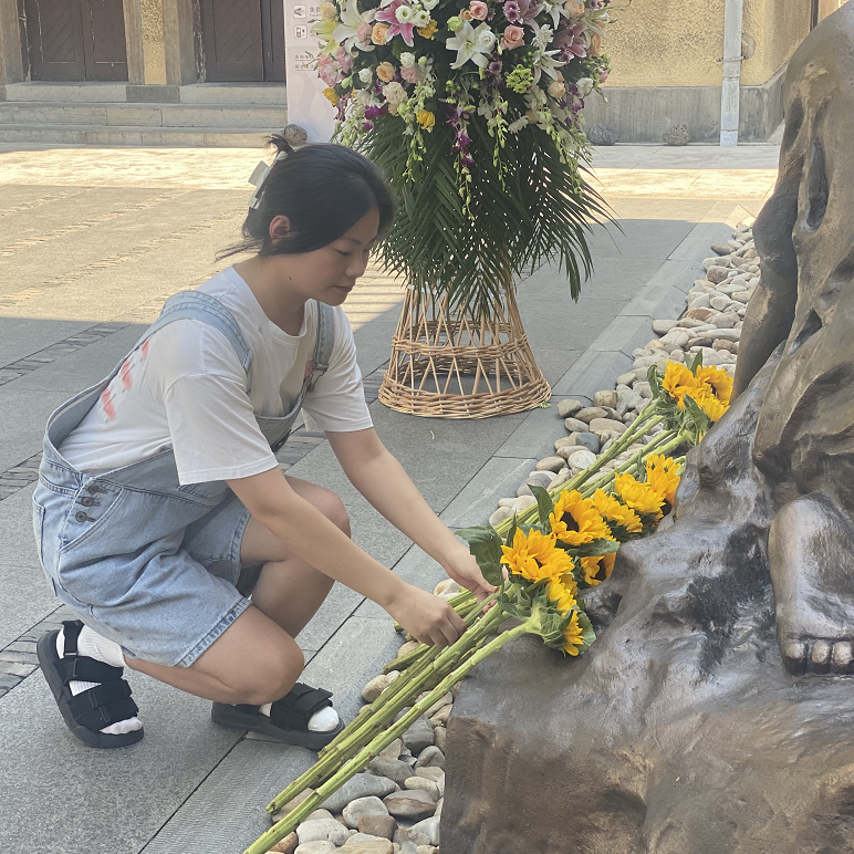 今天是世界“慰安妇”纪念日,侵华日军南京大屠杀遇难同胞纪念馆分馆——南京利济巷慰安所旧址陈列馆举行献花仪式,用鲜花缅怀、纪念日军“慰安妇”制度受害者。前来参观的人们自发停下脚步,献上象征温暖与光明的黄色向日葵,希望将温暖带给她们。