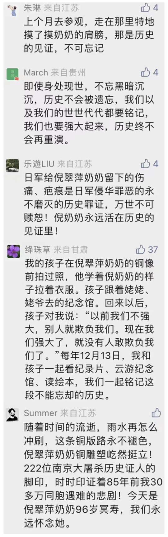 10月22日是南京大屠杀幸存者倪翠萍奶奶96岁冥寿,纪念馆特别推出《“云”说文物(6) | 倪翠萍铜雕塑背后的故事》,向网友讲述倪翠萍奶奶的故事。奶奶的遭遇令网友泪目,而她积极、乐观、开朗的生活态度又激励了许多人。