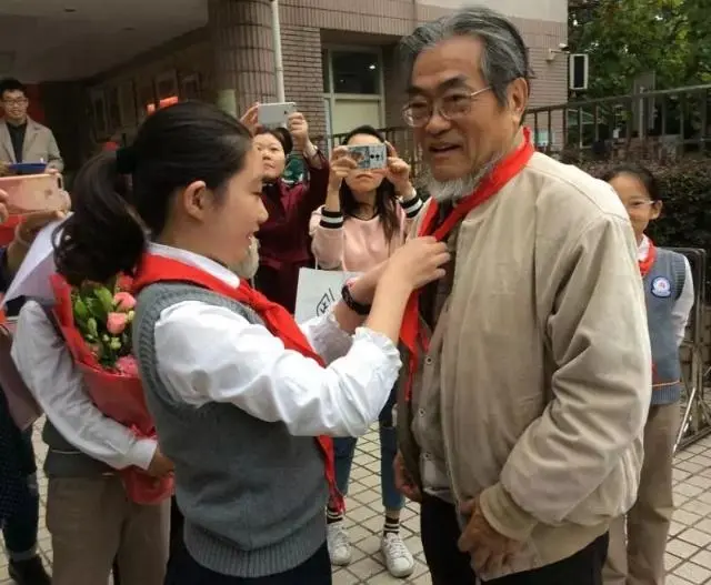 少先队员为邵子平系上红领巾,琅琊路小学特别授予邵子平“杰出校友”称号