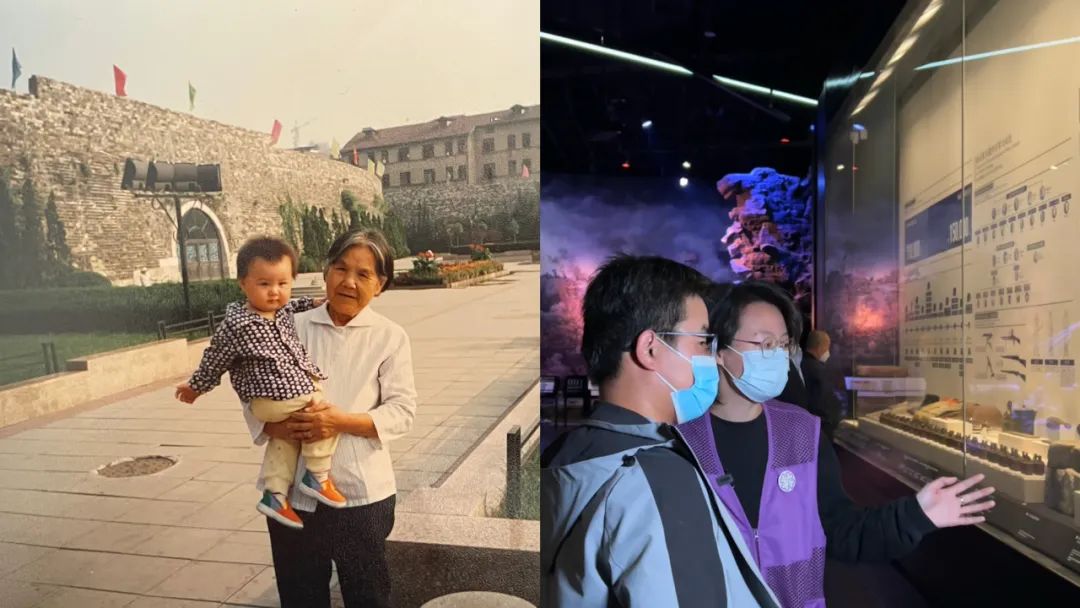 左图-马雯倩1岁时被马秀英抱在手中 右图-马雯倩在纪念馆担任志愿者为观众讲解