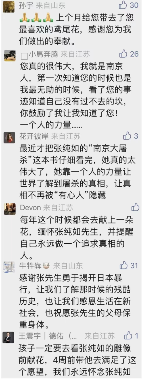 华裔女作家张纯如,是一位替历史呐喊的斗士,一位让历史无法忘却的女子。11月9日是她的忌日,纯如的一生,短暂却充满力量,她永远活在我们心中。网友纷纷留言,表达对她的敬爱与思念。