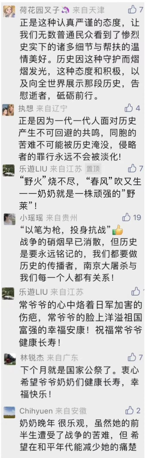 11月,纪念馆继续推出“我爷爷奶奶的这十年”、“我和南京大屠杀有什么关系”两大专栏,讲述阮定东、常志强、马秀英这10年来的幸福生活;介绍寻访拉贝的南大德语系师生、助力马吉影像回归南京的记者陈旻、率先报道南京大屠杀的作家王火的故事。这两个栏目的文章引发粉丝的共鸣,他们纷纷留言。