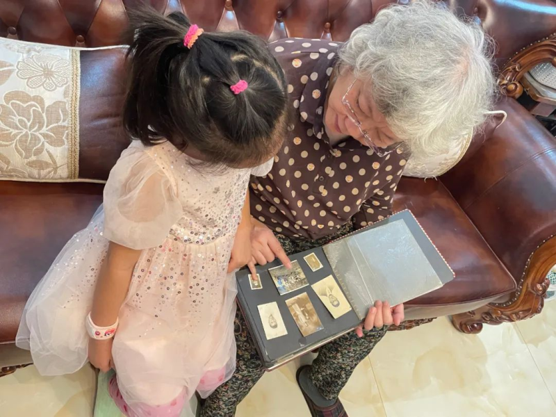 陈朝一向小孙女讲述陈斐然在南京大屠杀期间救助同胞的经历