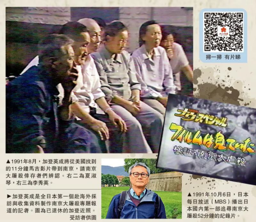 “关于南京大屠杀的历史,我在书上读过很多。实际采访之后,我觉得这并不是捏造,而是千真万确的事实。”加登英成表示,南京大屠杀的节目在日本反响很大,给他的职业生涯留下了深刻记忆。