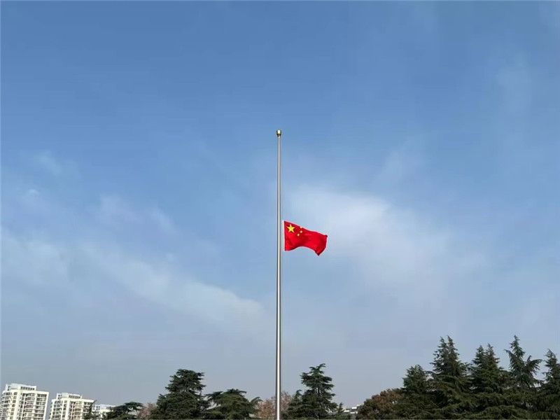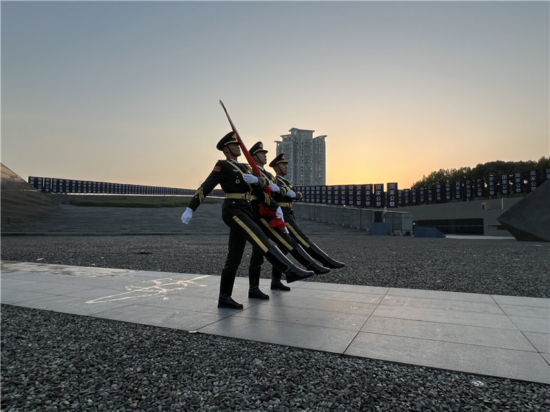 8时整,纪念馆在公祭广场举行升国旗、降半旗仪式。在嘹亮的国歌声中,中华人民共和国国旗徐徐升起,又缓缓降半。我们以国之名,悼念南京大屠杀死难者。