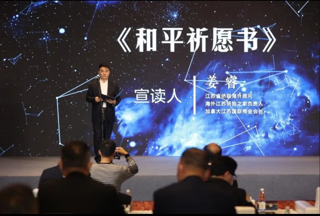 “侨连五洲·相约江苏——铭记历史 珍爱和平”海内外侨界和平祈愿会在南京举办。海外江苏侨胞之家负责人代表姜睿宣读了由35个国家的38家海外江苏侨胞之家共同发出的《和平祈愿书》,并以H5形式向全球华侨华人发布。截至发稿,祈愿书已经在全球100多个国家的10万多民众中接力传递。
