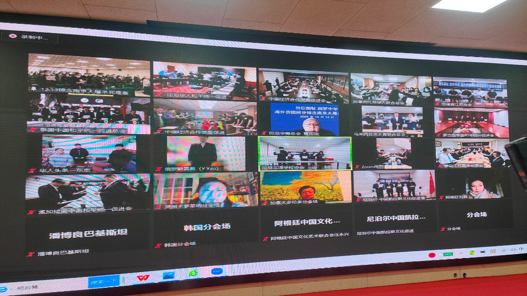 12月13日上午,南京市侨联组织在宁部分侨领、归侨侨眷、留学生、基层侨务工作者等,连线20多个国家和地区分会场,开展线上“云集会”,共同观看南京大屠杀死难者国家公祭仪式直播,同步举行悼念活动。南京市侨联今年还发起了世界和平火炬云接力活动。截至发稿,已有158个国家和地区的逾32万海外华人华侨参与。