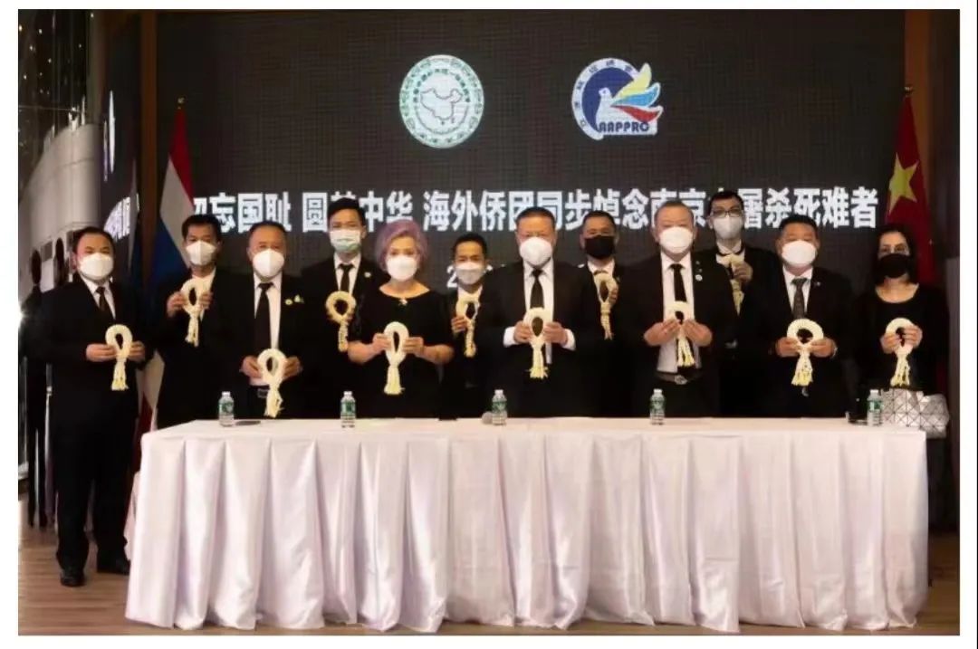 12月13日上午,泰国中国和平统一促进总会华人华侨在住在国共同观看了第九个南京大屠杀死难者国家公祭仪式现场直播,同步举办悼念活动。大家向南京大屠杀死难者寄托哀思。