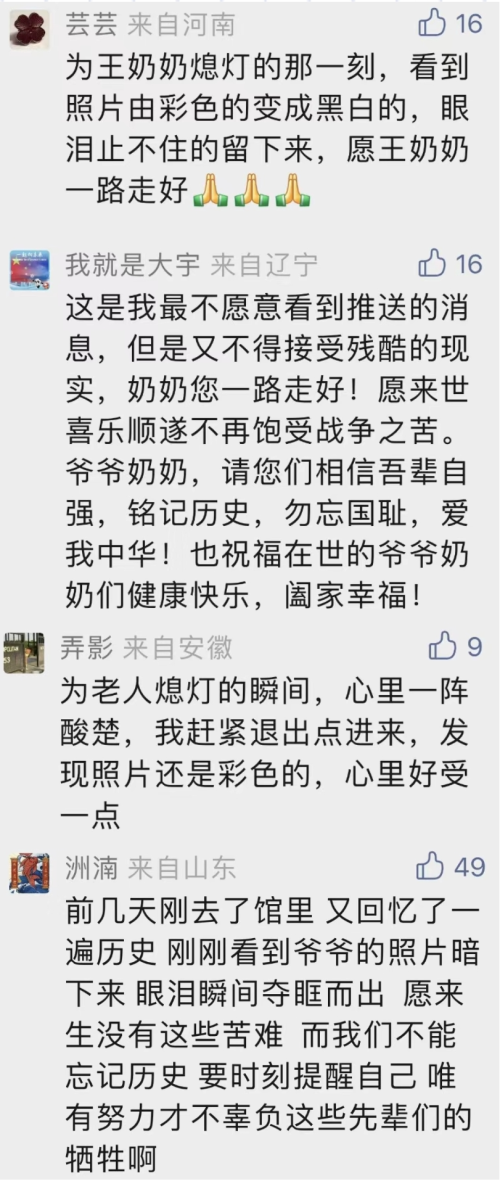 展厅中幸存者照片墙上的灯,暗了一盏又一盏。幸存者正在老去,但他们揭开“伤疤”、直面苦难的勇气,激励了无数网友。