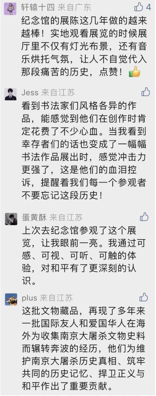 在我馆微博和微信公众号中,每日的网友互动量过百条。这些文字朴素中带着真挚,温暖中充满力量,一笔一画都表达着参观者和网友的心声。