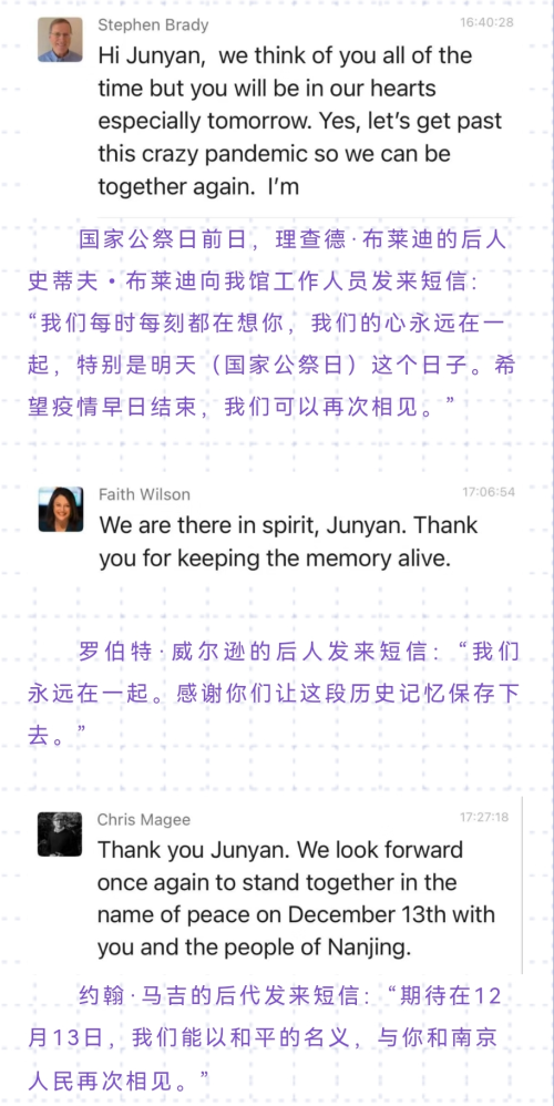 85年后,国际友人的后代仍然心系南京,在国家公祭日到来之际,他们纷纷点燃蜡烛,缅怀逝者。
