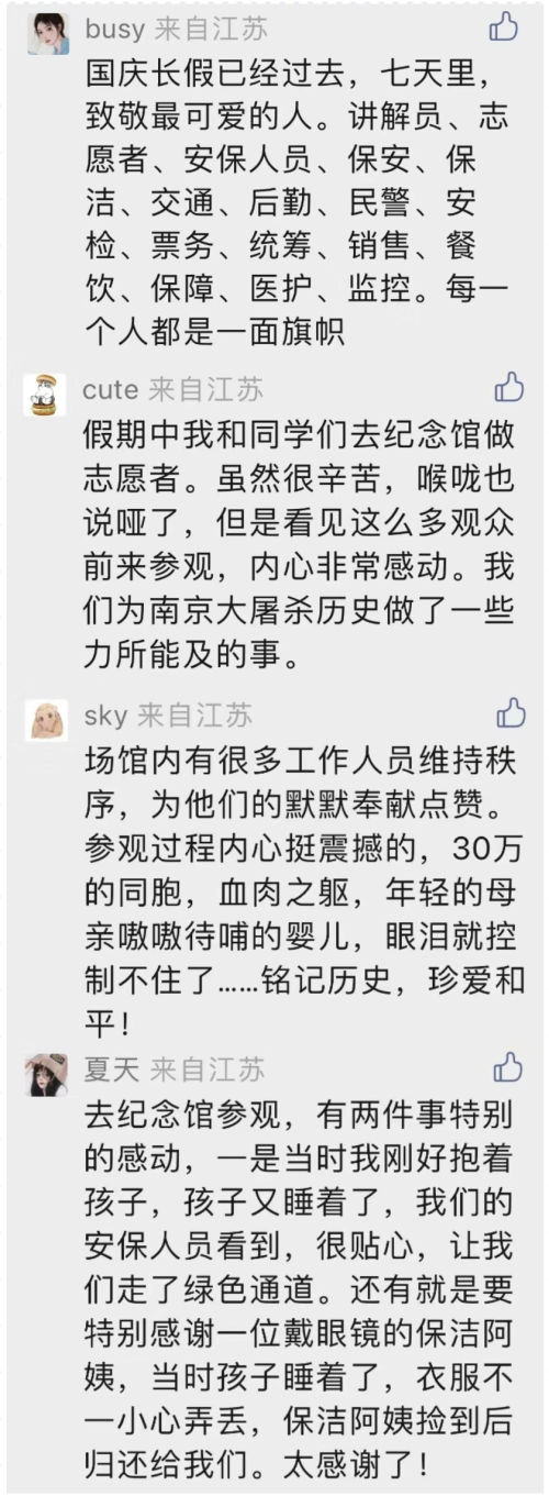 “充满仪式感的浸入式参观体验让心灵得到洗涤”“在孩子的心中洒下和平的种子”……纪念馆既是铭记历史的阵地,也是传播和平的窗口。