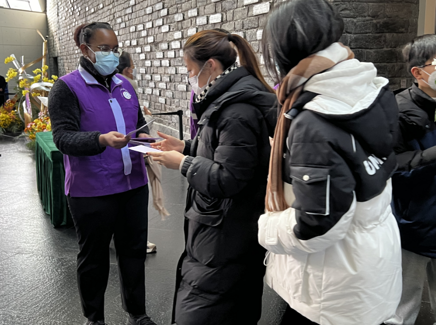 春节假期,来自佛得角的姑娘爱珊欢,以及来自韩国的小伙儿李度宪和姑娘朴智源也来到纪念馆做志愿服务。