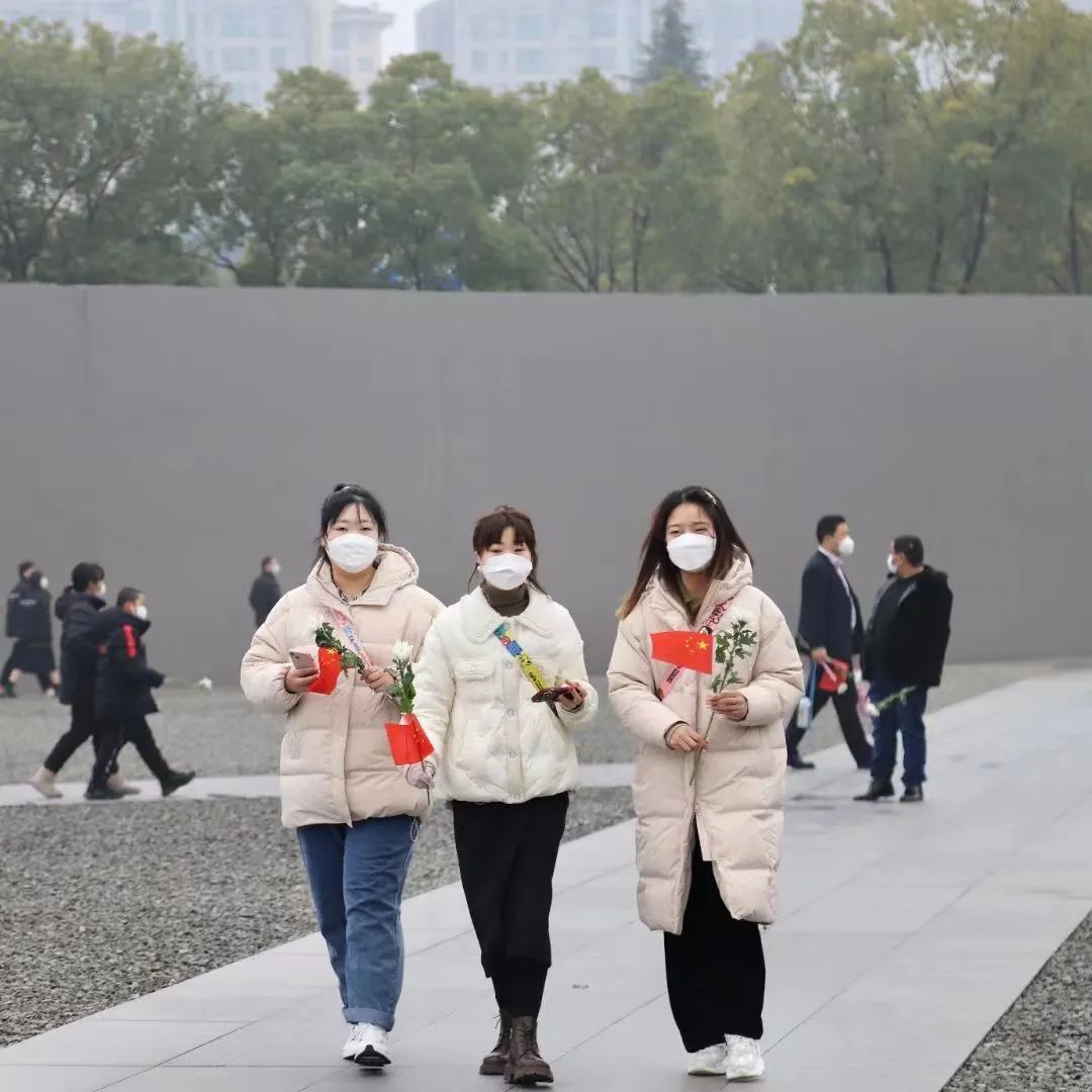 在纪念馆悼念广场,来自安徽师范大学的两名大学生在铜版路上边走边写。男孩告诉小编,他们读师范专业。他说:“身正为师,学高为范。总书记的新年致辞,我看了好几遍,内心深受鼓舞。我们要居安思危,不忘过去的苦难。以后我工作了,要把这段历史讲给学生们听。让他们好好学习。”