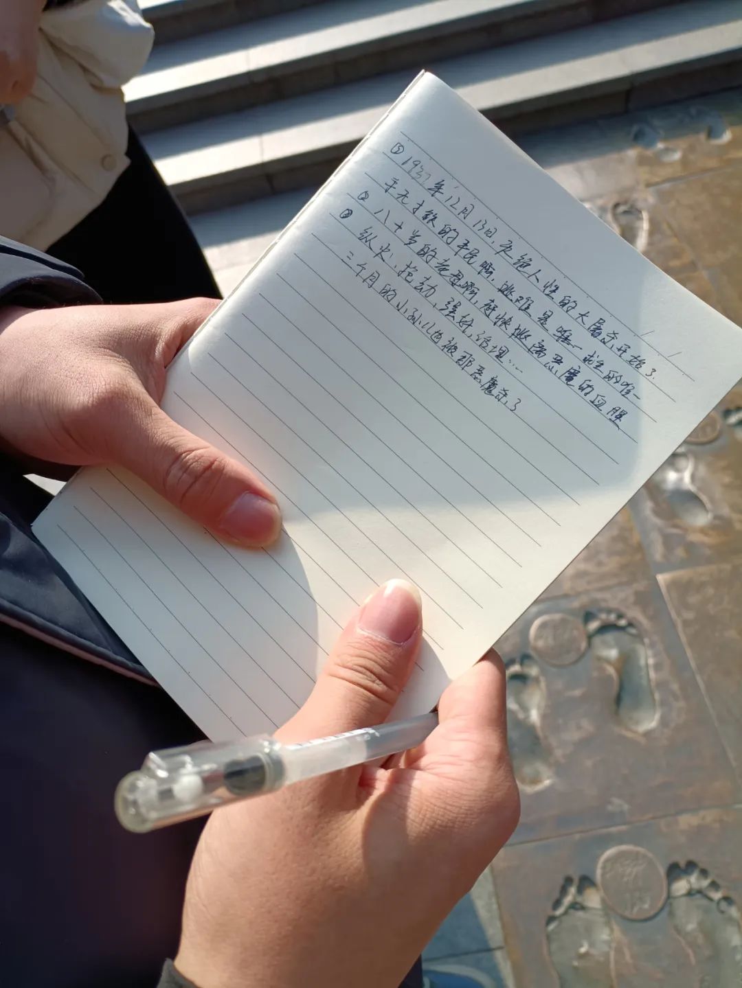观众束女士带着两个弟弟从安徽合肥来到纪念馆参观。她说:“纪念馆里的每一处景观、每一块石头,都见证了过去这段历史,落后就要挨打。习近平总书记在春节团拜会上说,‘新征程是充满光荣和梦想的远征,没有捷径,唯有实干。’我现在已走上工作岗位,两个弟弟都还在读书。新的一年,我希望自己工作上更加努力,为社会创造价值;希望两个弟弟在学业上能更进一步,将来做个对社会有用的人,为国家做贡献。”