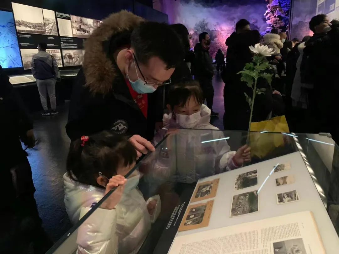 2004年出生的张宇航和大学同学结伴来纪念馆参观。他特地穿着写有“中国”字样的羽绒服,意在“把祖国放在心上”。他在展厅里几乎看了所有的影像。他说,“以后等我结婚有了孩子,一定要跟孩子讲述这段历史,带孩子再来参观。”