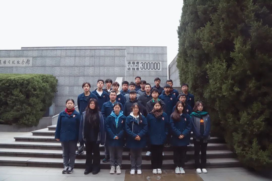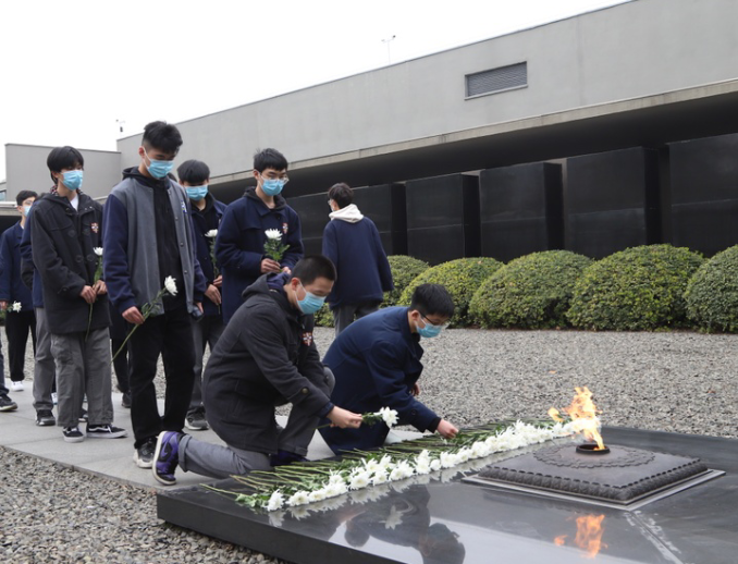 随后,同学们参观了南京大屠杀史实展,在讲解员的带领下,走进历史记忆的深处。参观后,同学们来到祭场,向死难同胞敬献菊花。