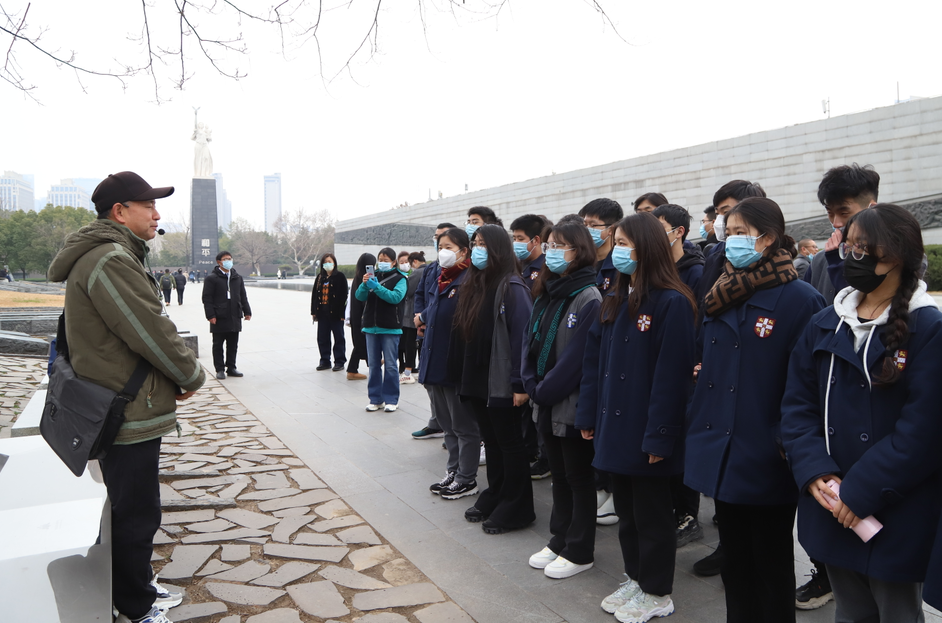 在和平广场,同学们见到了已故南京大屠杀幸存者王素明的女婿夏天行,他作为首批南京大屠杀历史记忆传承人,向同学们讲述岳母的经历。在南京大屠杀期间,王素明的父亲身为学校校长,为了保护学校师生惨遭日军杀害。“岳母生前经常跟我们说:‘千万不能忘记侵华日军的滔天罪行。’”。