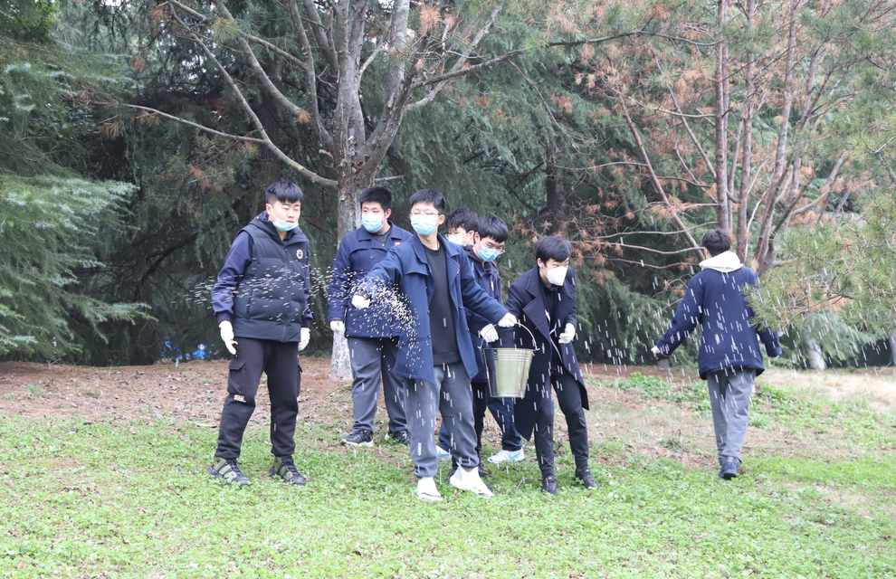 二月兰为什么又叫紫金草?紫金草为什么被称为和平之花?紫金草该如何种植?在山坡前,我馆工作人员向同学们讲述了紫金草的故事,并传授种植方法。听完讲述,同学们走上山坡,为紫金草施肥。