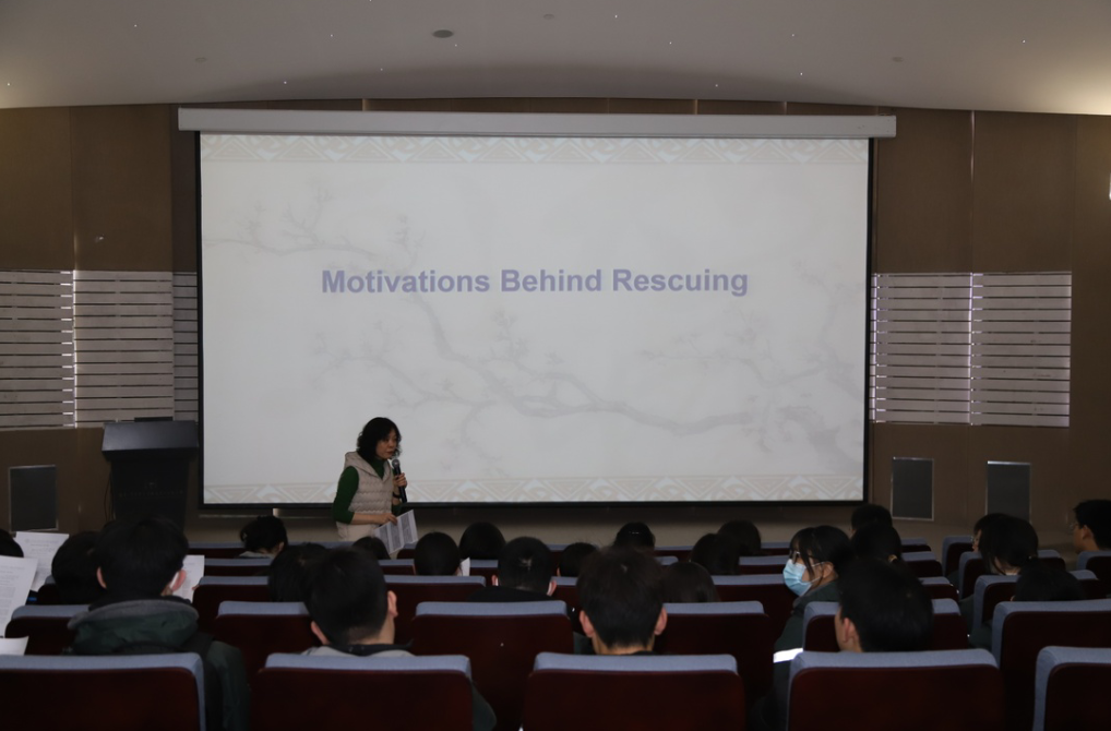 南京紫金草国际和平学校受聘教师尚媛媛带来英文授课《拯救背后的动机》