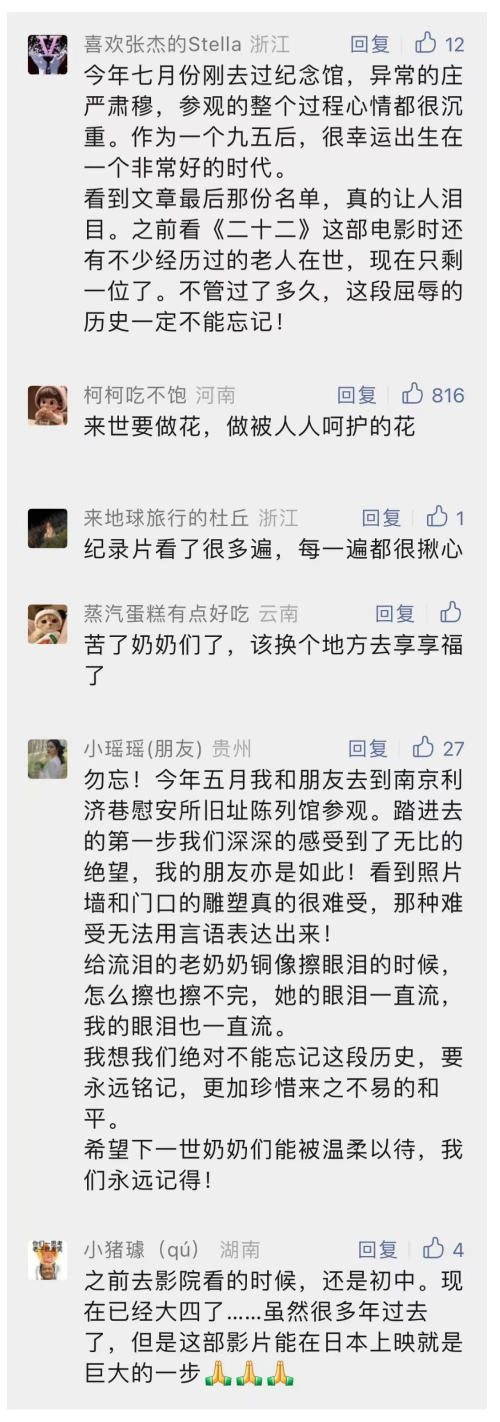 9月18日,侵华日军“慰安妇”制度受害幸存者现状纪录电影《二十二》在日本首映。国内上映时,片中老人尚有8位在世;截至日本首映前,片中老人仅剩1人。