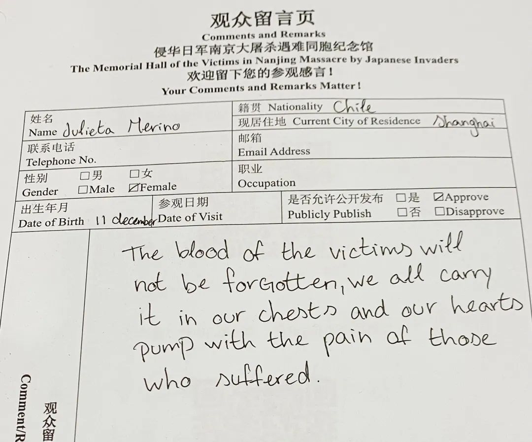大年初一,许多观众走进纪念馆,把参观感受以书面留言的形式留在这里。一条条留言,写出了对南京大屠杀遇难同胞的思念与悼念,也写出了对祖国的美好祝福。