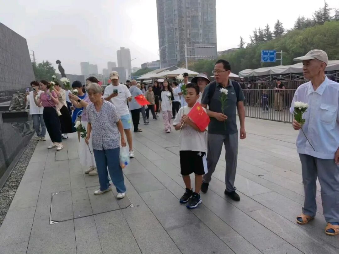 来自安徽阜阳的何先艳带着两个儿子来馆参观。何女士说:“看到五星红旗升起,听到和平大钟敲响的那一刻,我特别激动、自豪。希望孩子们能记住这份感动,长大后做一个爱国、有担当的人。”