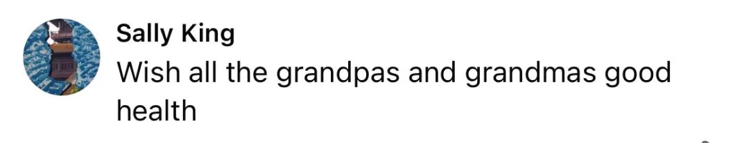 网友Sally评论:“希望所有爷爷奶奶们身体健康。”