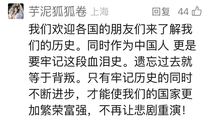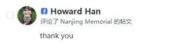 网友Jazhley留言:“南京大屠杀的历史令人悲痛。”