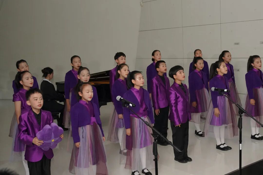 紫金草童声合唱团的孩子们用纯净的歌声演唱《紫金草向阳生长》。