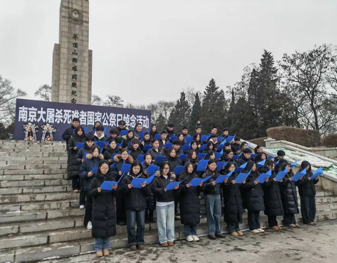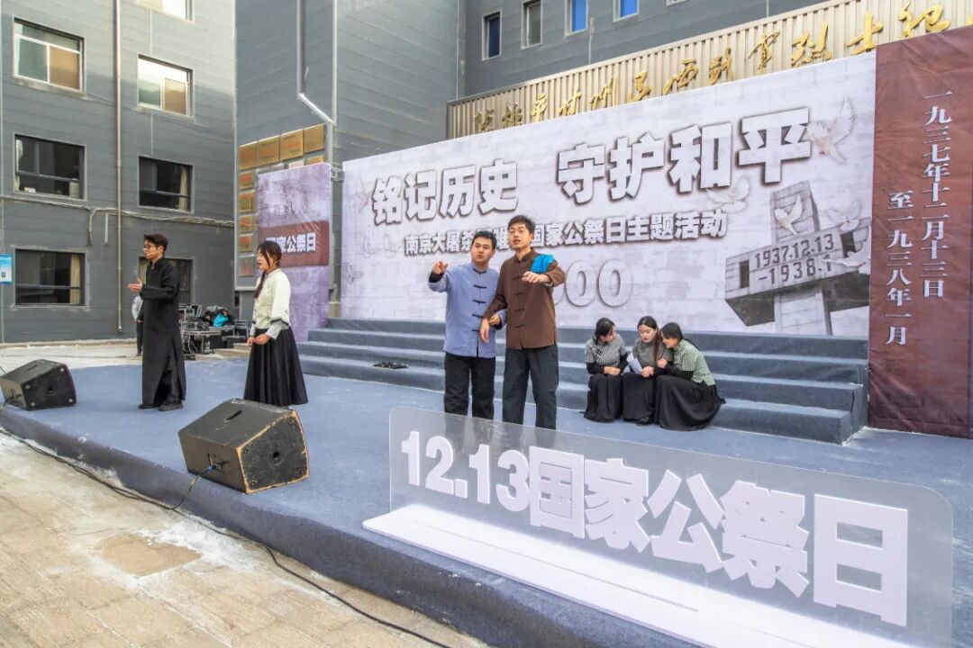 河北邢台。中国人民抗日军政大学陈列馆举行同步悼念活动,陈列馆工作人员和邢台市浆水中学师生代表等300余人参加。全体人员共唱国歌、抗大校歌,学生代表宣读《和平宣言》,大家在和平许愿墙上留下和平祈愿。随后,全体人员参观《人类的浩劫:1937南京大屠杀》史实展。